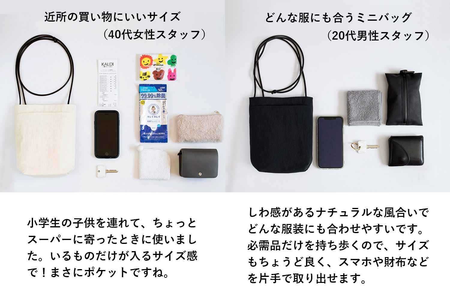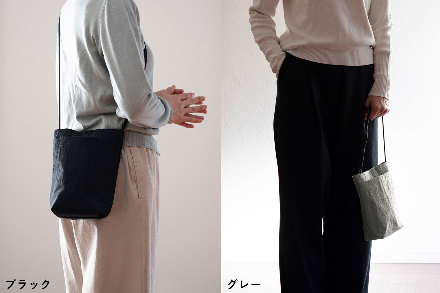 細く華奢な印象のまま、方に食い込みにくく、重さの負担も軽減されました。