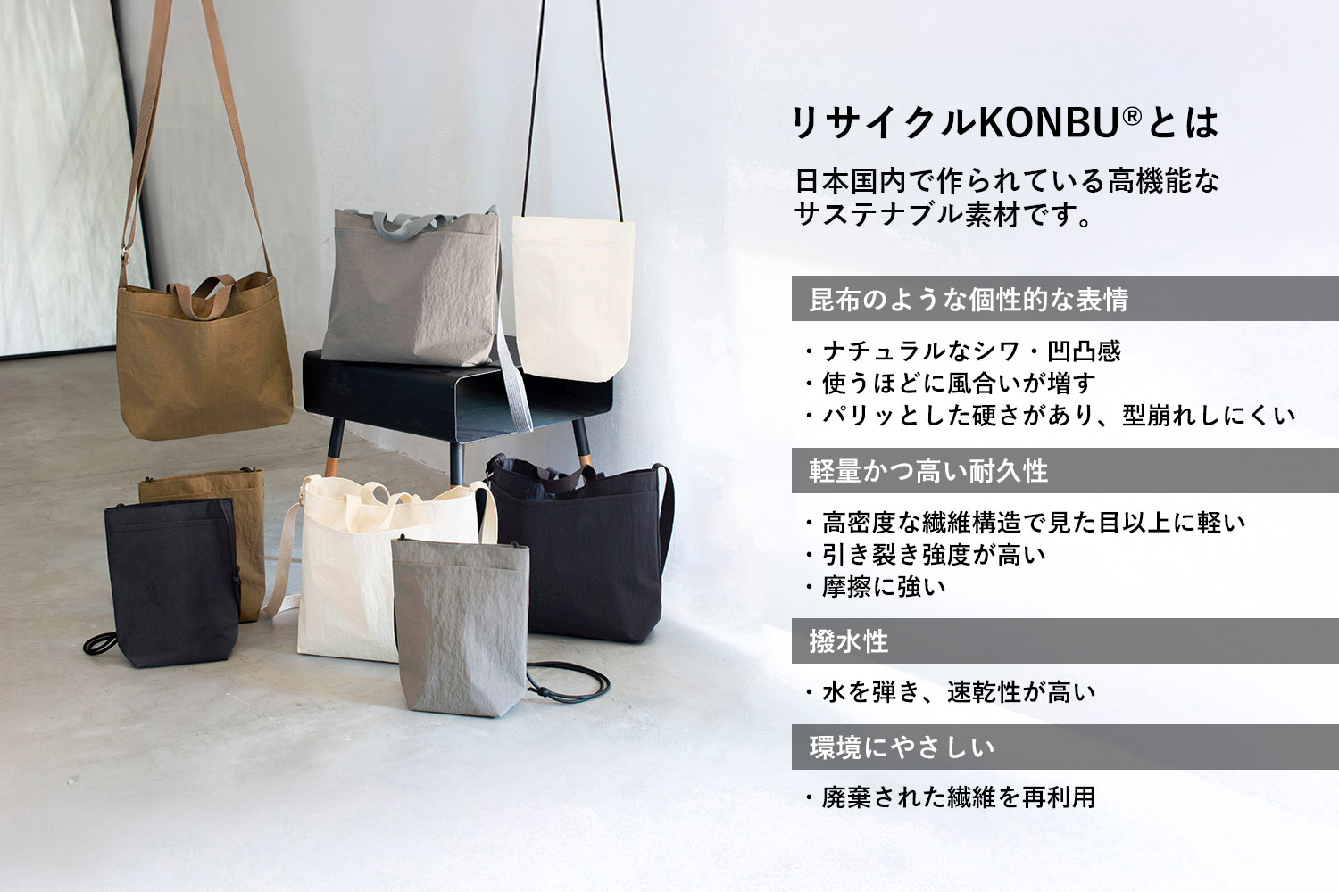 国産生地「KONBU®ナイロン」を採用。