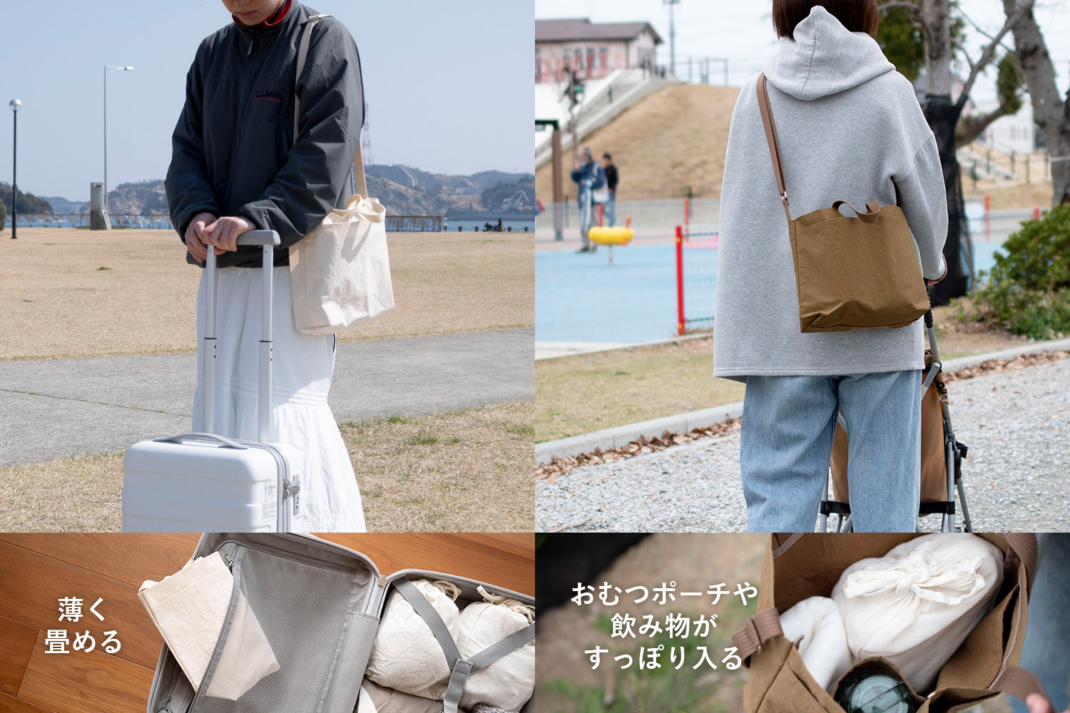とても軽いので、荷物が増えて重くなりがちな旅行や、ママバッグにピッタリ。