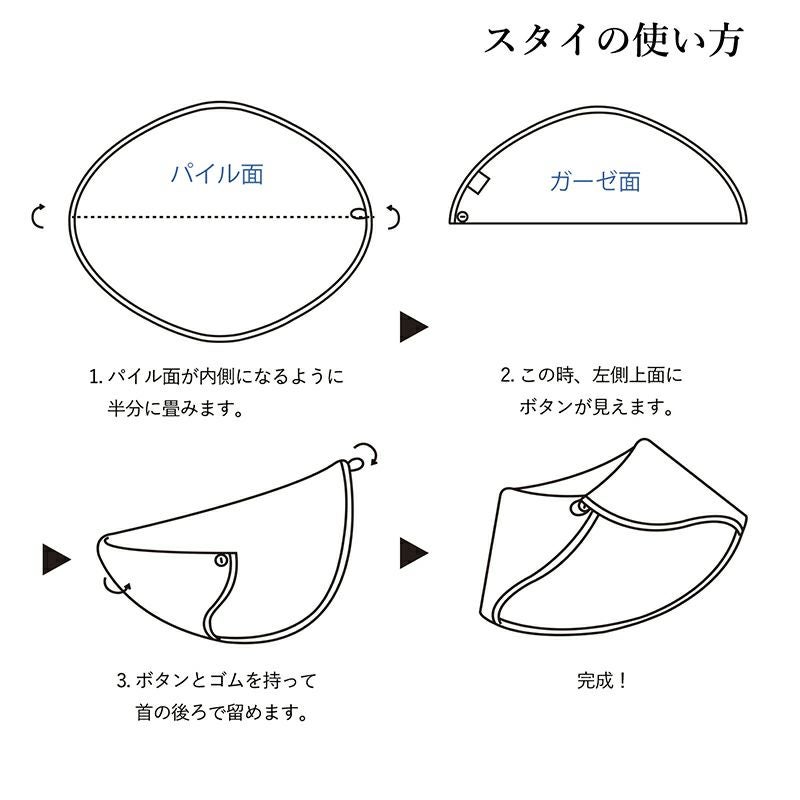 このスタイは、半分に畳んでから首に巻いて使うので、よだれをたくさん吸収できるかたちです。