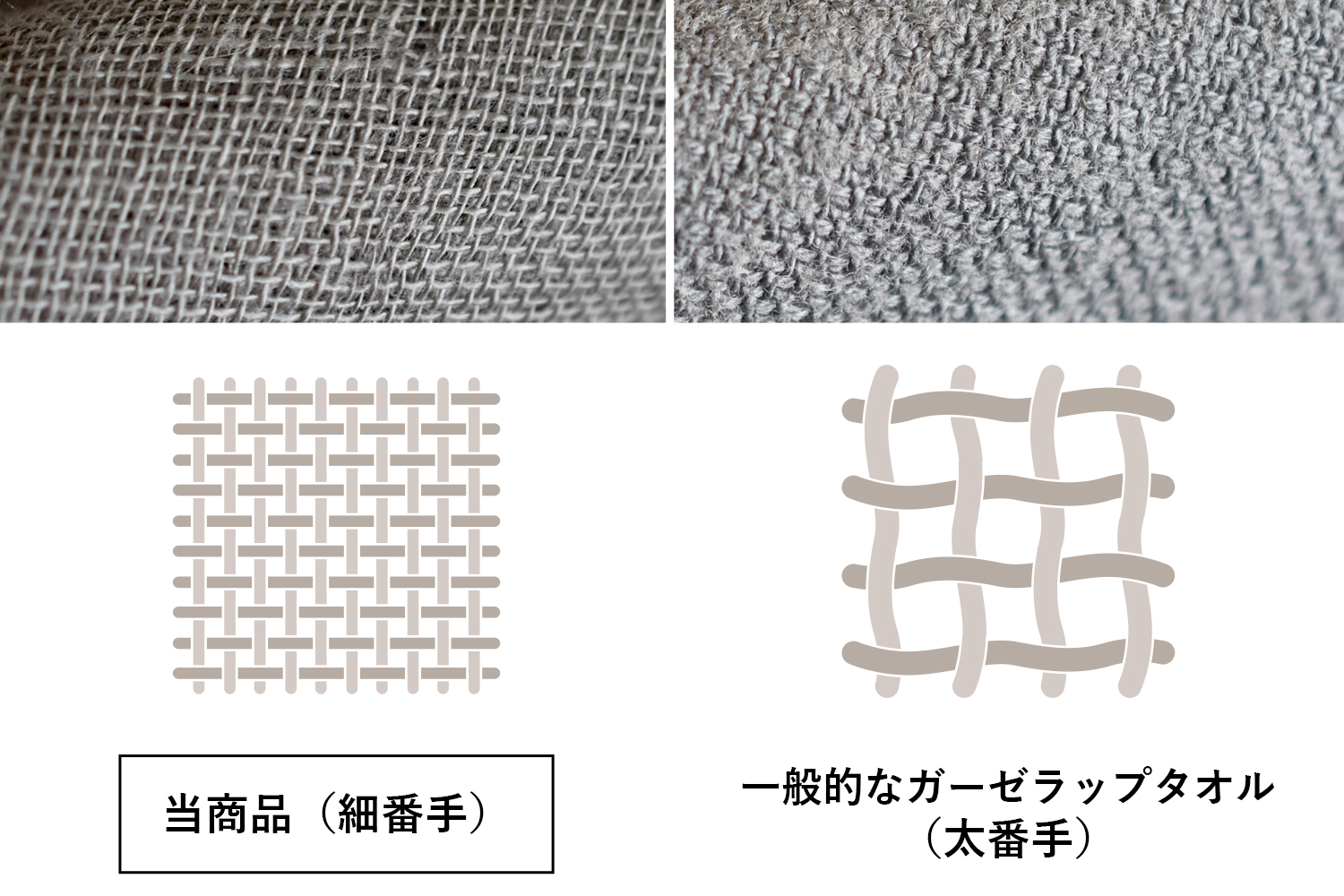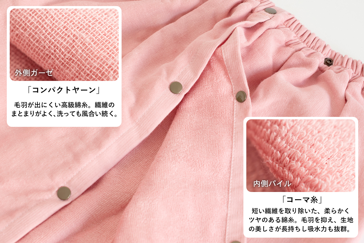 1枚の生地ではなく、ガーゼ生地とパイル生地を繋げ合わせた2重構造なので、肉厚です。
