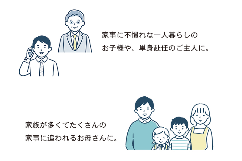 家事に不慣れな一人暮らしのお子様や、単身赴任のご主人に。