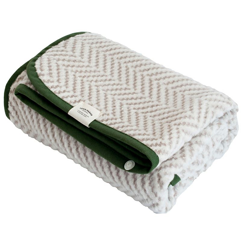 凹凸のある柄とコットン素材によって、ブランケットが膝や肩からずり落ちにくい。