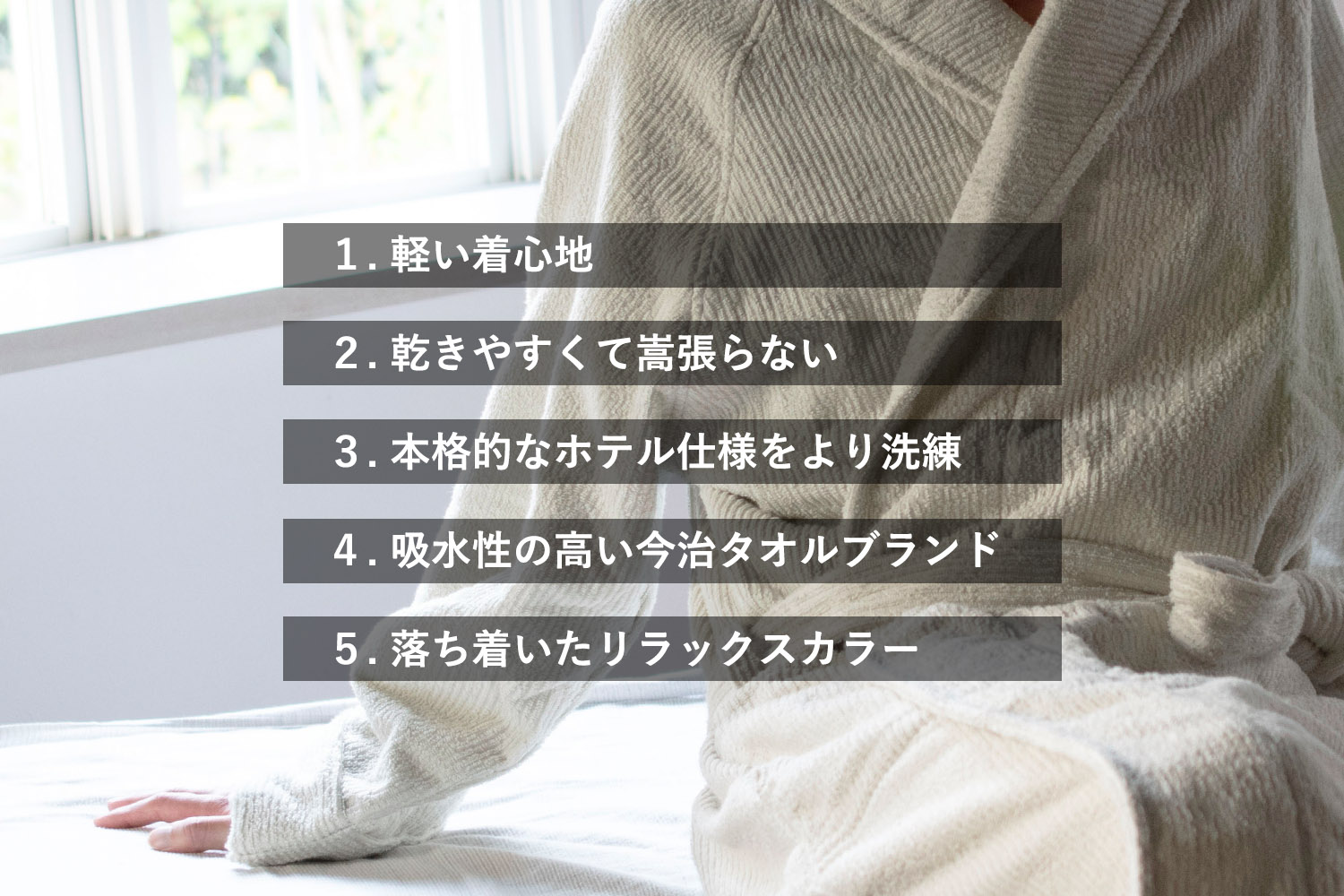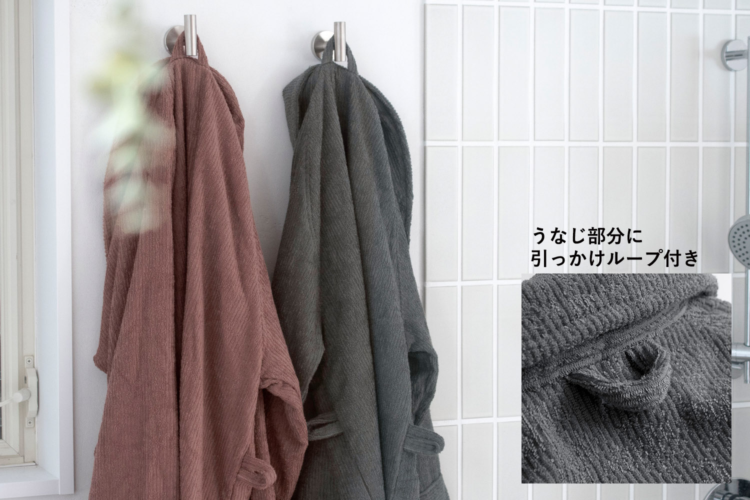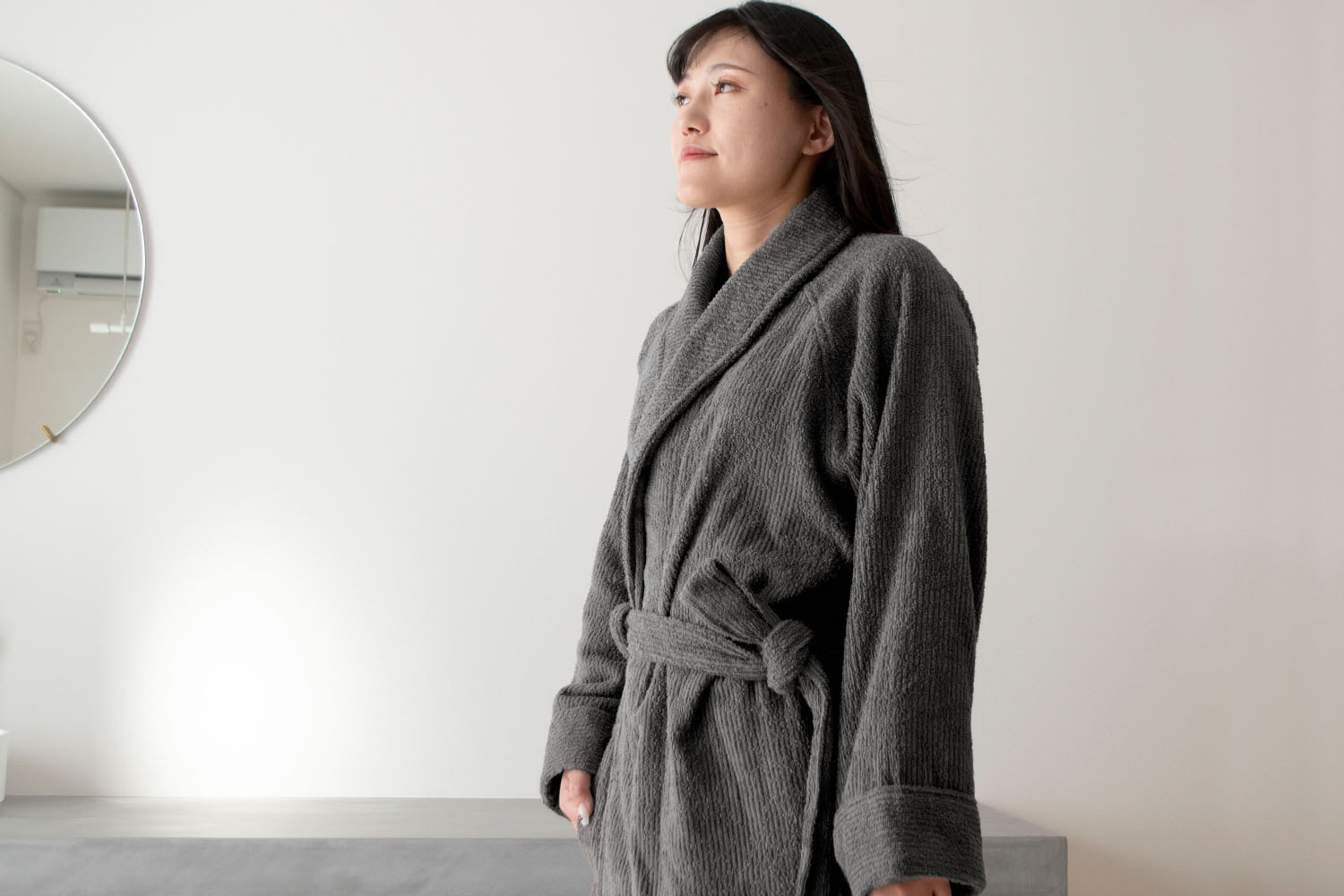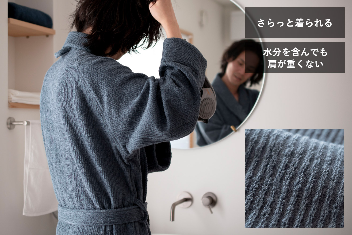 確かな品質が保証されたバスローブ。卓越した吸水性と、
