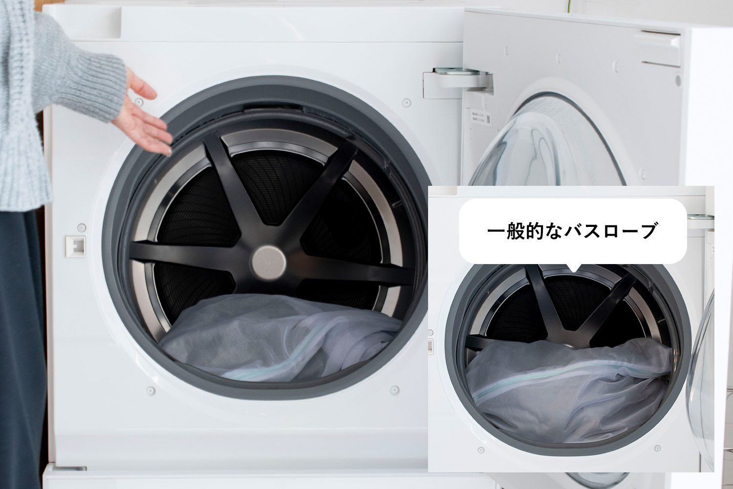 「バスローブ=洗濯機の場所を取る」イメージを覆します。