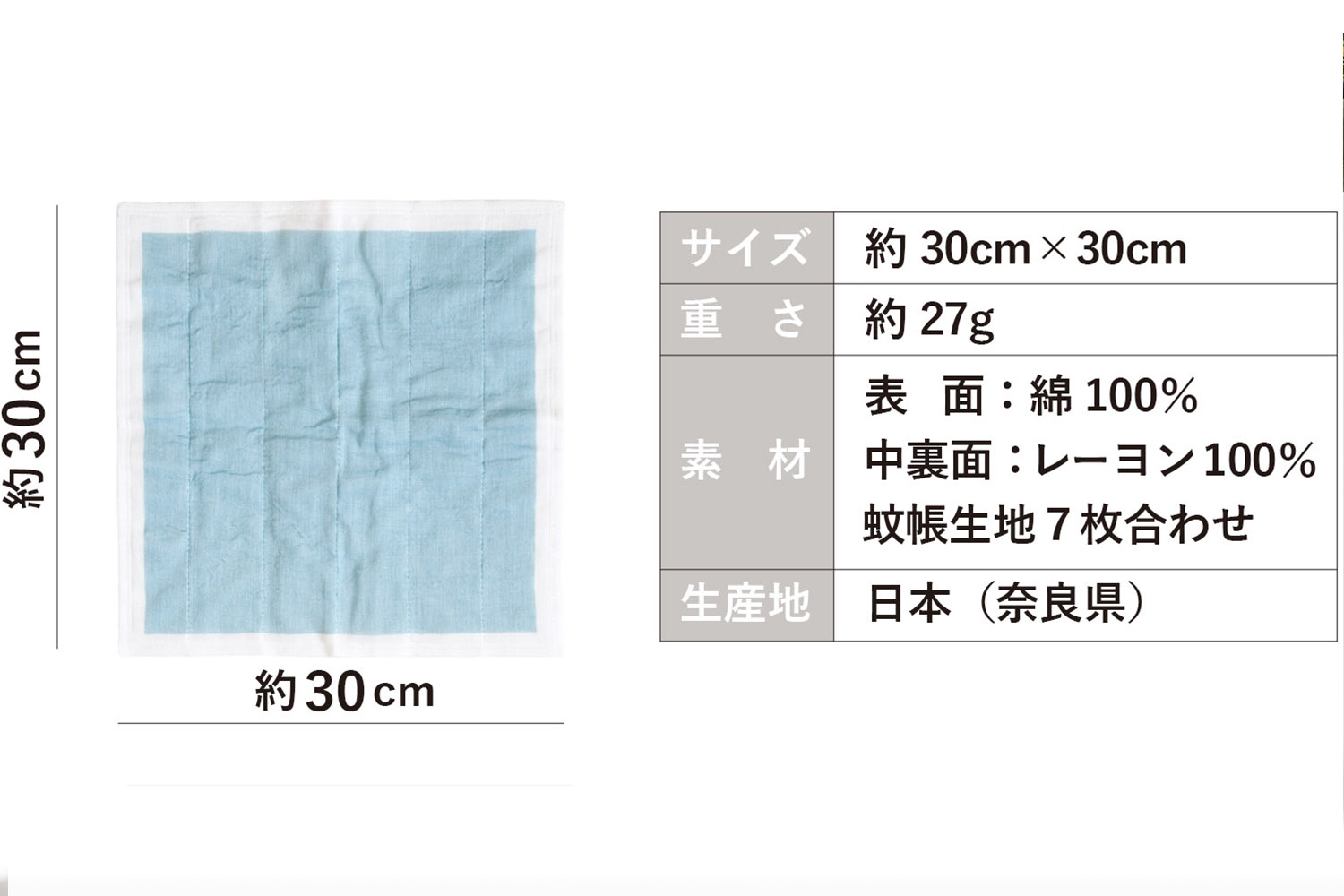 蚊帳生地を7枚重ねているので、厚みがあり丈夫です。