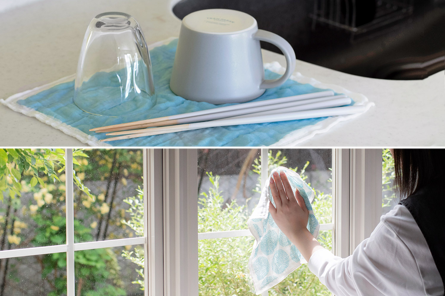 一時的な水切りマット、窓ガラスや床拭きに