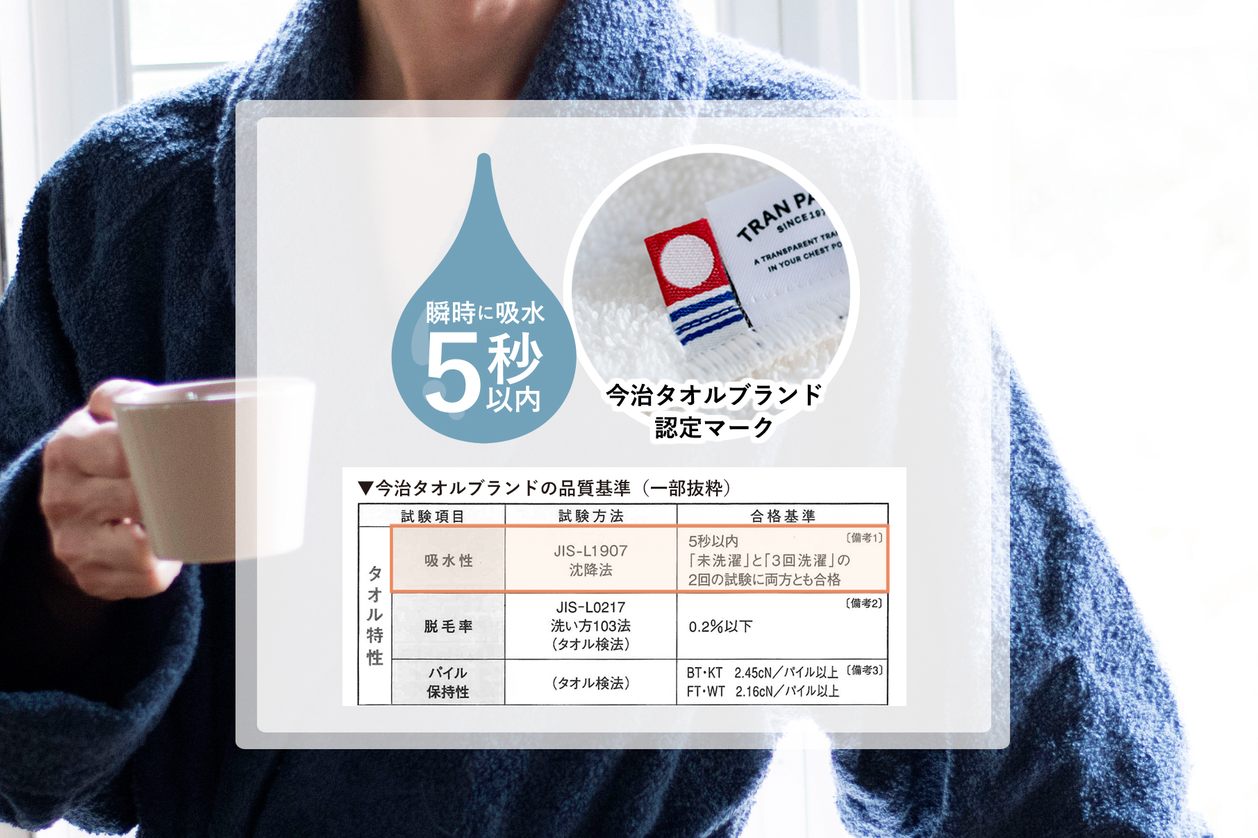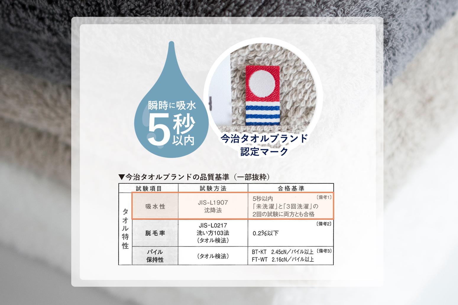 今治タオルブランドの独自の品質基準をクリアしている、信頼と実績の吸収力。