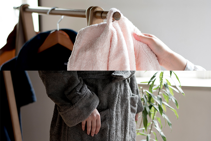 入浴後は肌の乾燥が進むのでバスローブを着て肌の保護と保湿をおすすめします。