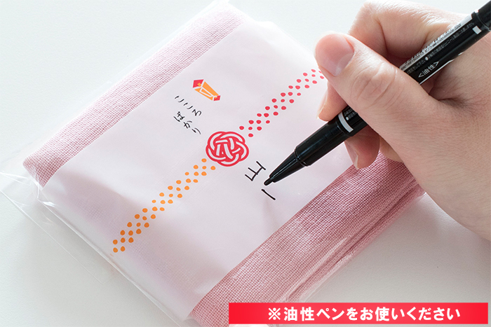 通常の紙熨斗みたいに袋から一度出して書くひと手間が省けて、ご自分で手軽に名入れをしていただくことができます。