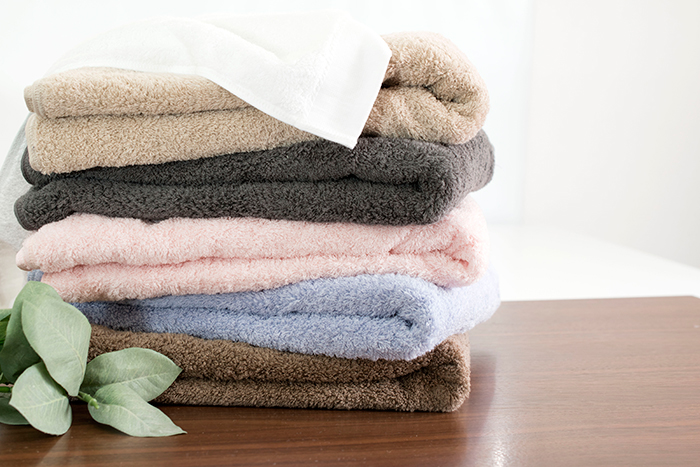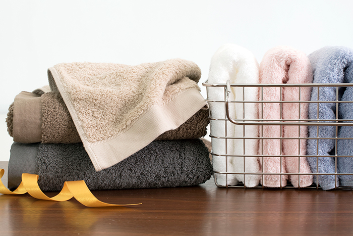 白度が高い原綿に染色を施しているので、発色と光沢感に富み、上品で色鮮やかなタオルが揃っています。