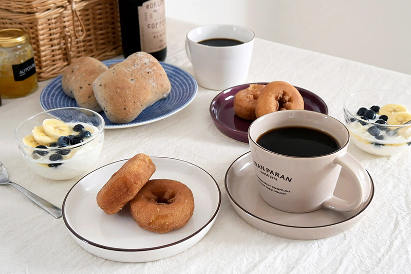 マグカップを少し端に寄せると、カフェトレーみたいに使えます!