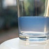 透過していくグラデーションで口元を上品に隠すガラスコップ