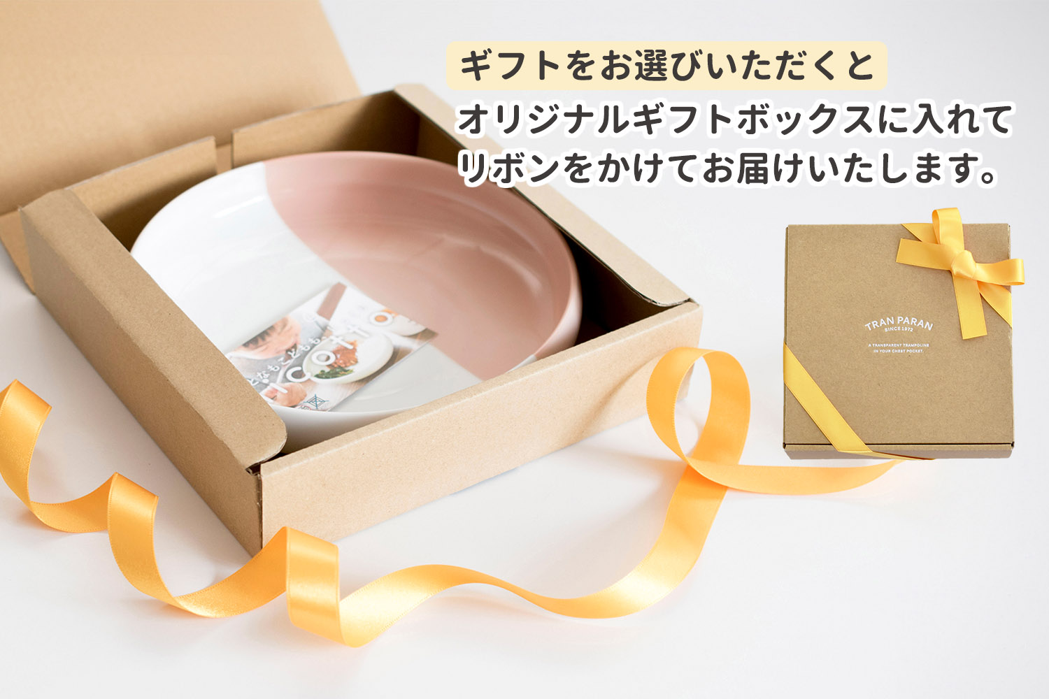 ギフトをお選びいただくと、オリジナルギフトボックスに入れてリボンをかけてお届けいたします。
