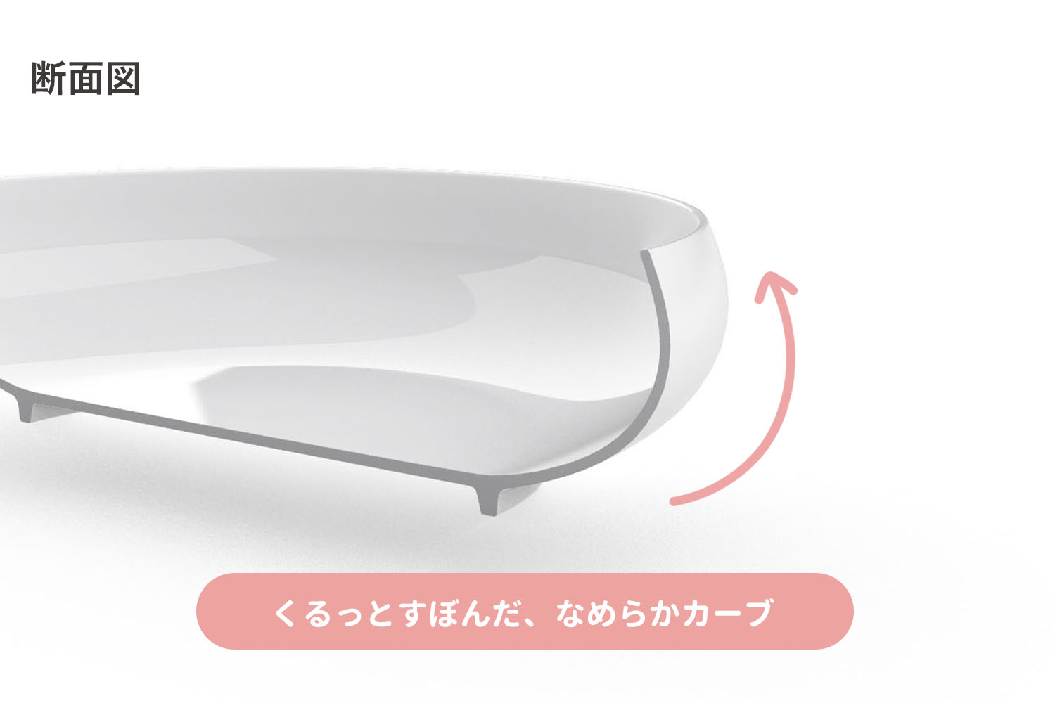 くるっとすぼんだなめらかカーブで最後まですくいやすくて自分で食べられる!