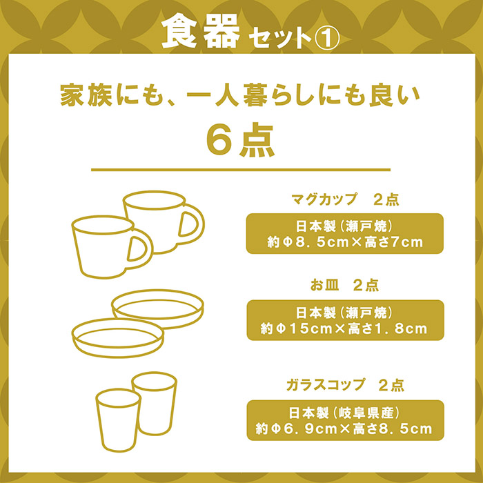 日本製食器詰めわせの、お得な福袋! マグカップとソーサーにもなるプレートが入ったセットと、子供食器とガラスコップが入ったセットからお選びいただけます。 夫婦、兄弟(姉妹)、一人暮らし、家族みんなで使える盛りだくさんな内容です。