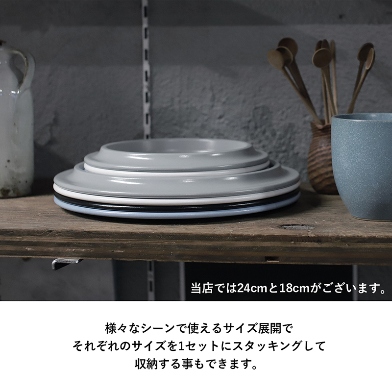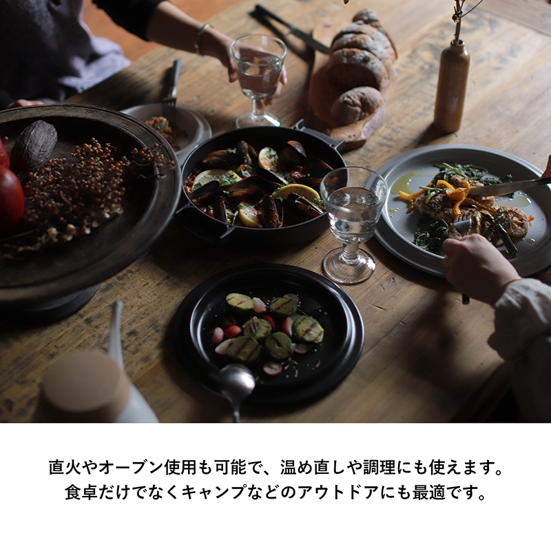 陶器のような優しい質感と銅版の割れない強さを兼ね備えたホーロープレート。 直火対応なのでコンロでの温め直しや、アウトドアでもご利用できます。 18cmのちょうどいいサイズ感で、パンやサラダ、デザート皿としてもおすすめです。 艶消しが施されたほうろうの柔らかな質感で、 食卓を落ち着いた大人っぽい雰囲気にしてくれる器です。