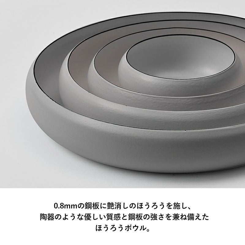 陶器のような優しい質感と銅版の割れない強さを兼ね備えたホーローボウル。 直火対応なのでコンロでの温め直しや、アウトドアでもご利用できます。 24cmのサイズ感はサラダやパスタなど大皿としてお使いいただけます。 艶消しが施されたほうろうの柔らかな質感で、日常の食卓でアクセントになる器です。