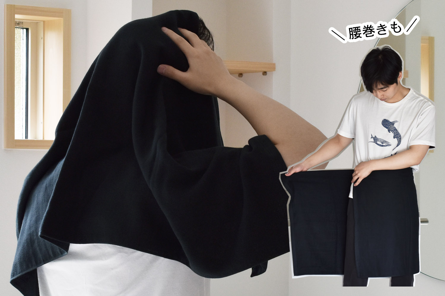 腰巻きできるサイズでサウナや銭湯にも便利。