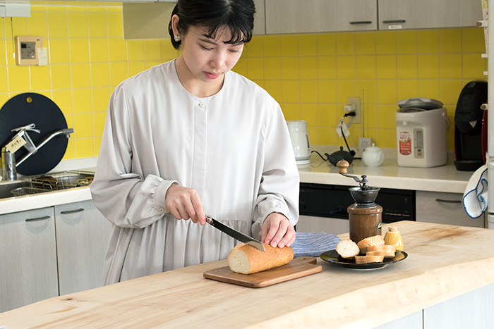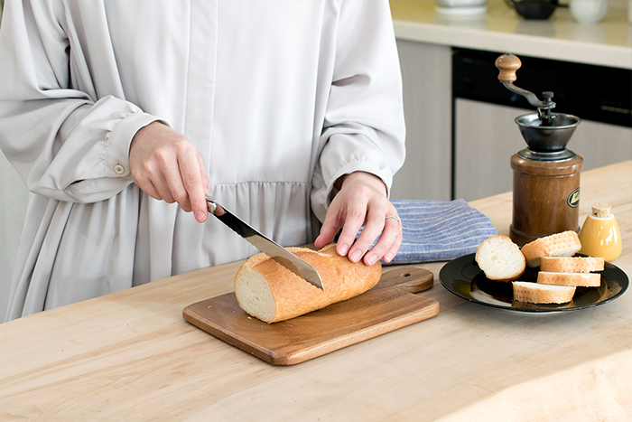 硬いバゲットも力を入れずにノコギリのように動かせば
