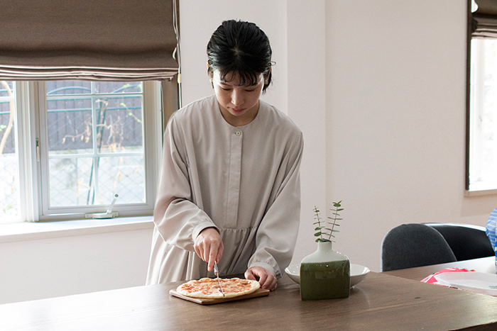 ピザの具が落ちず切りやすくなっています。