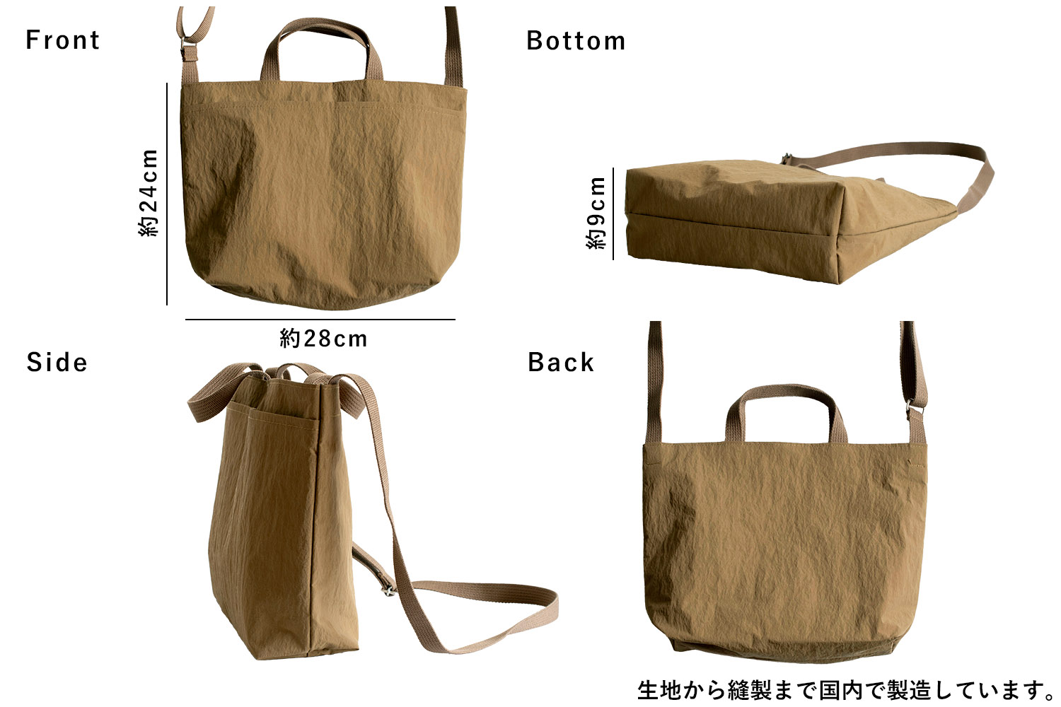 撥水性を兼ね備えた生地なので雨の日にバッグが濡れるストレスもありません。