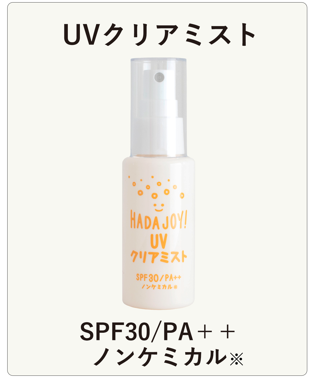 他の画像を見る 「日焼け止め×保湿」のUVクリアミスト 日焼け止め ミスト HADA JOY ハダジョイ 無料ラッピング可 さらさら ノンケミカル UV SPF30 PA++ 送料無料 オリジナル メーカー希望小売価格 ¥ 2,380 ¥ 2,380 税込 詳細を見る お気に入りに登録する