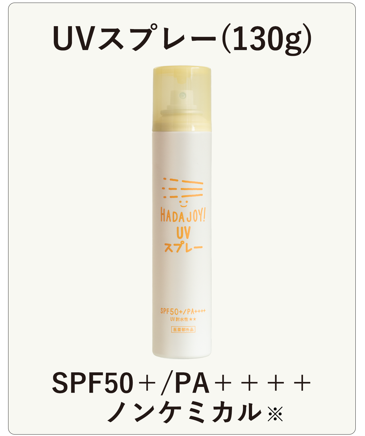 他の画像を見る ノンケミ処方で、妥協しないUVスプレー 日焼け止め スプレー HADA JOY ハダジョイ 無料ラッピング可 さらさら ノンケミカル UV SPF50+ PA++++ 130g 送料無料 オリジナル メーカー希望小売価格 ¥ 2,530 ¥ 2,530 税込 詳細を見る お気に入りに登録する