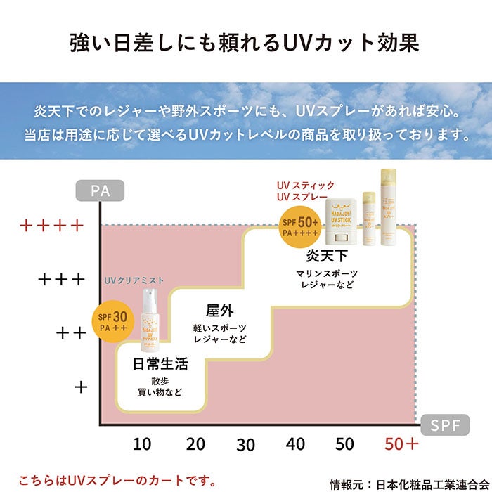 炎天下でのレジャーや野外スポーツでも、UVスプレーがあれば安心の国内最高値のSPF50+,PA++++