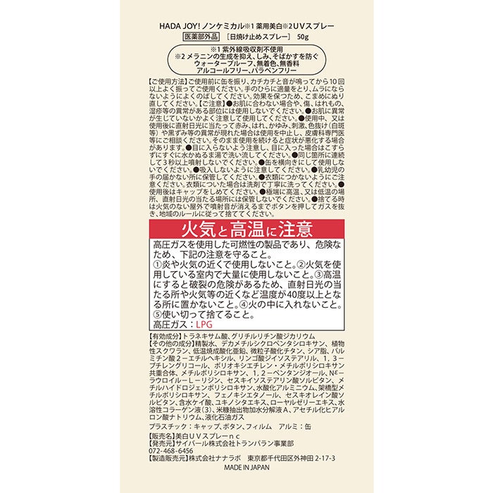 炎天下でのレジャーや野外スポーツでも、UVスプレーがあれば安心の国内最高値のSPF50+,PA++++
