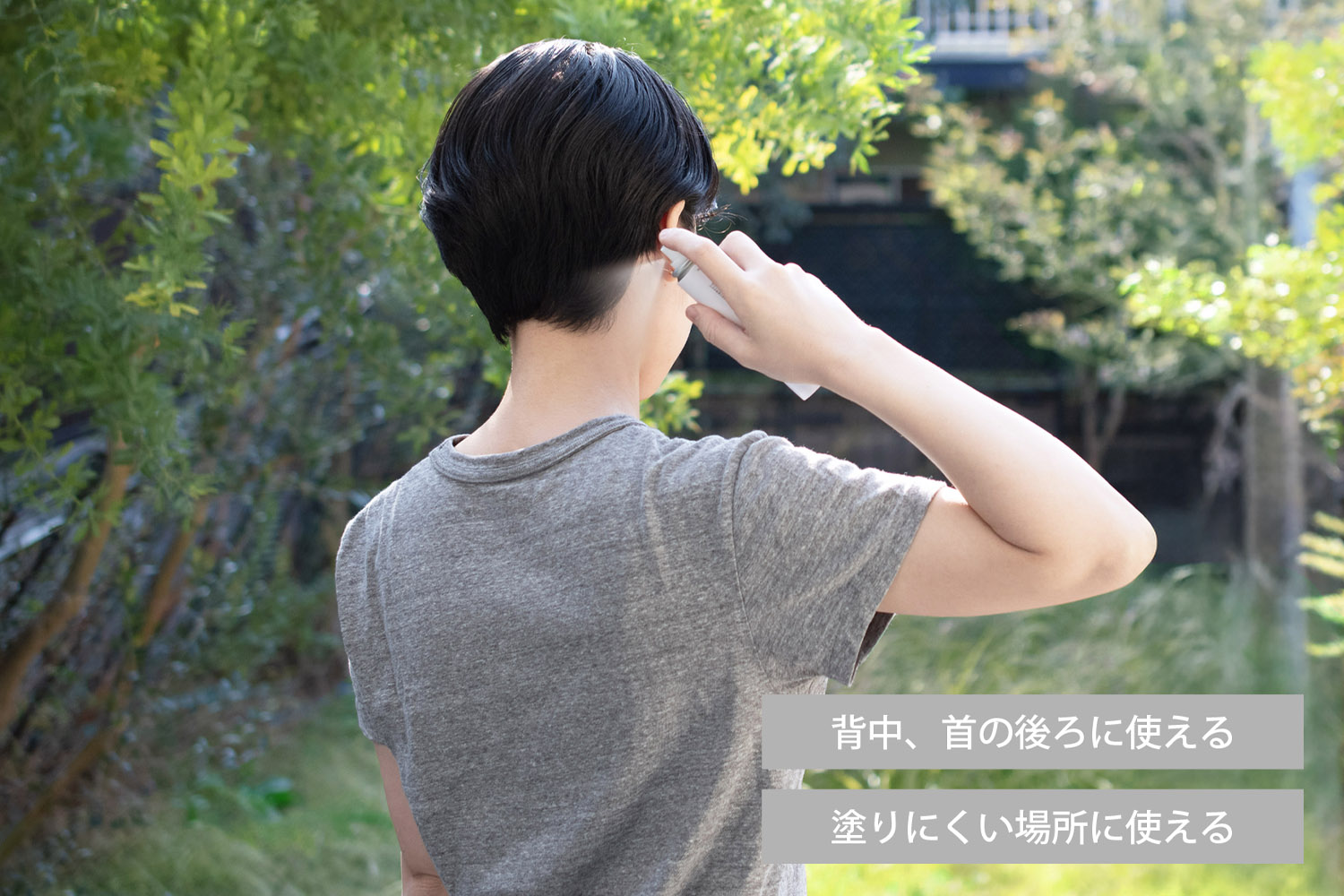 背中や首の後ろなどの塗りにくい部分にも簡単にお使いいただけます。