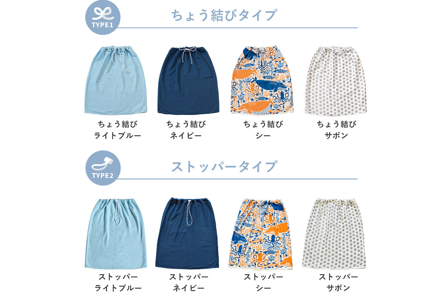 ちょう結びでギャザー部分の微調整ができるからその時々の体型にジャストフィット。