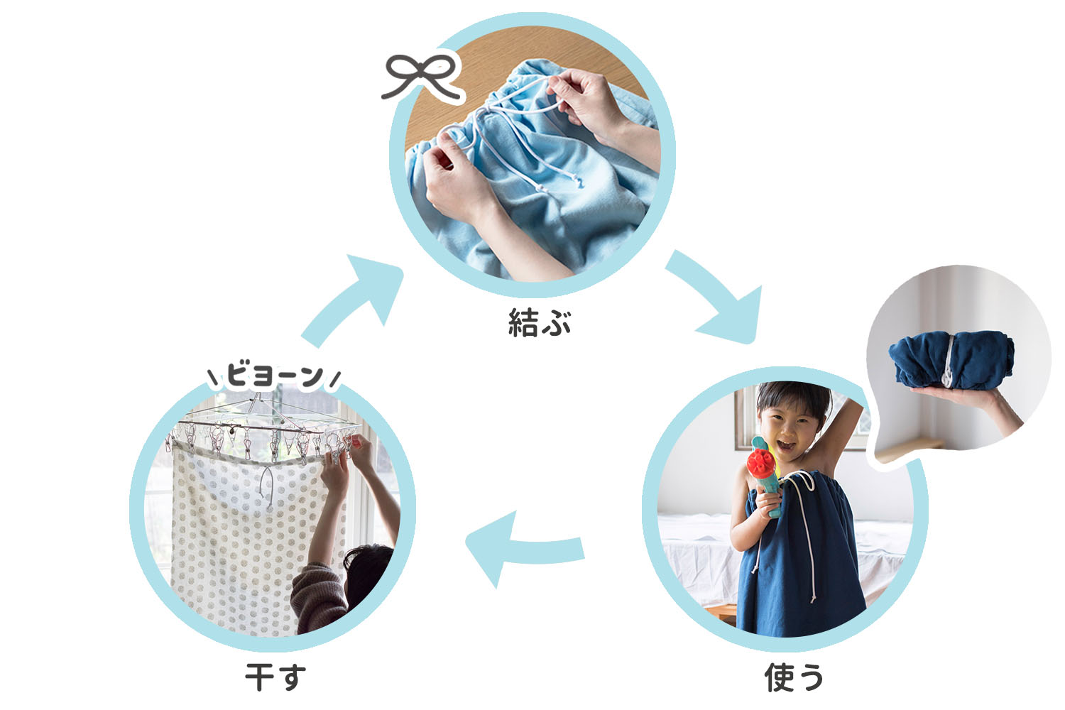 「ギャザー部分って生地が密集してるから乾きづらい…」の声からうまれた、広がる巻きタオルです。