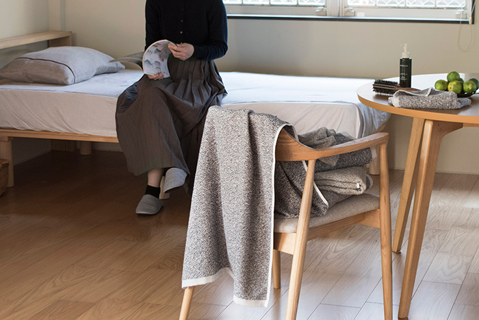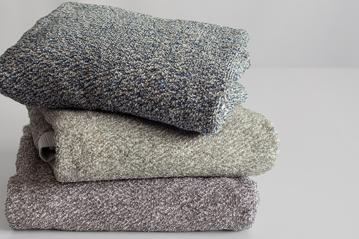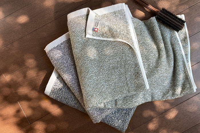 経験と知識が豊富な熟練のタオル職人によって、糸のミックス配合を巧みに調整し、深みのある風合いが生まれました。