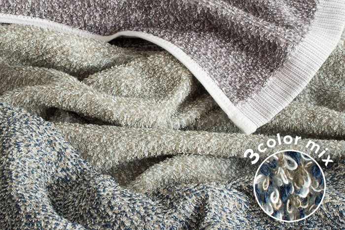 1枚のタオルの中に異なる3色の糸をミックス。