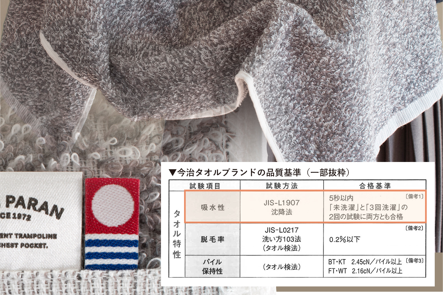 吸水性を保証する「5秒ルール」をクリア。