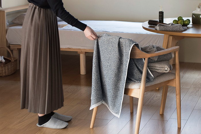 サッと椅子にかけたタオルも、たたみかけの洗濯物も、