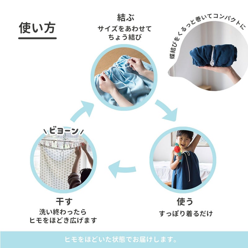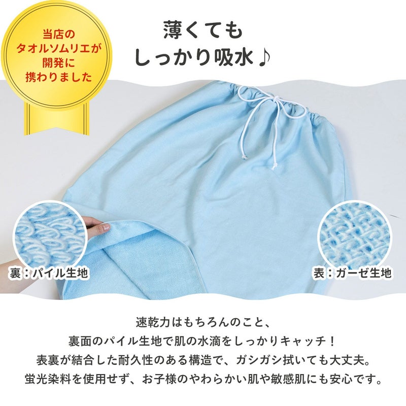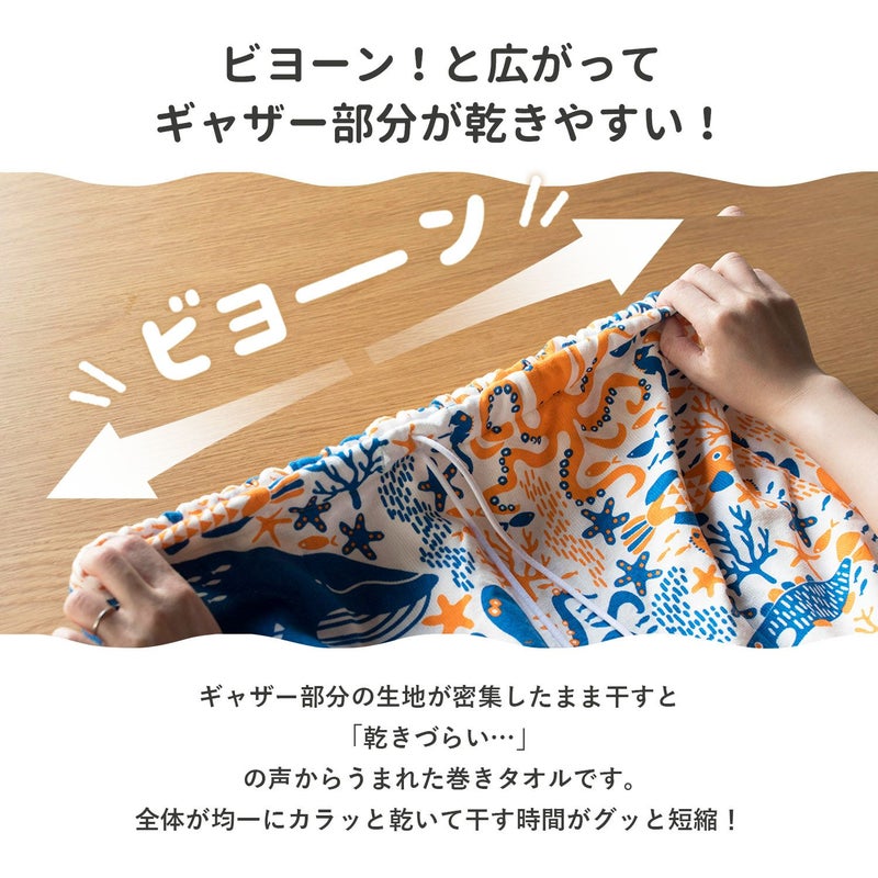 「ギャザー部分って生地が密集してるから乾きづらい…」の声からうまれた、広がる巻きタオルです。