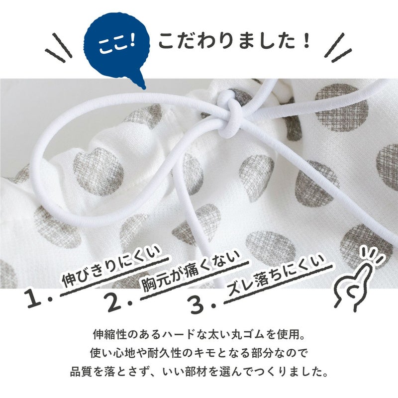 ちょう結びでギャザー部分の微調整ができるからその時々の体型にジャストフィット。