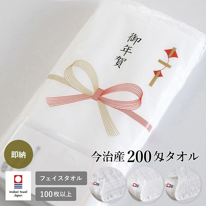 3. 即納 お年賀タオル 今治タオル 200匁 【100枚~】 白タオル 日本製 のし印刷袋入り 個包装 名刺ポケット