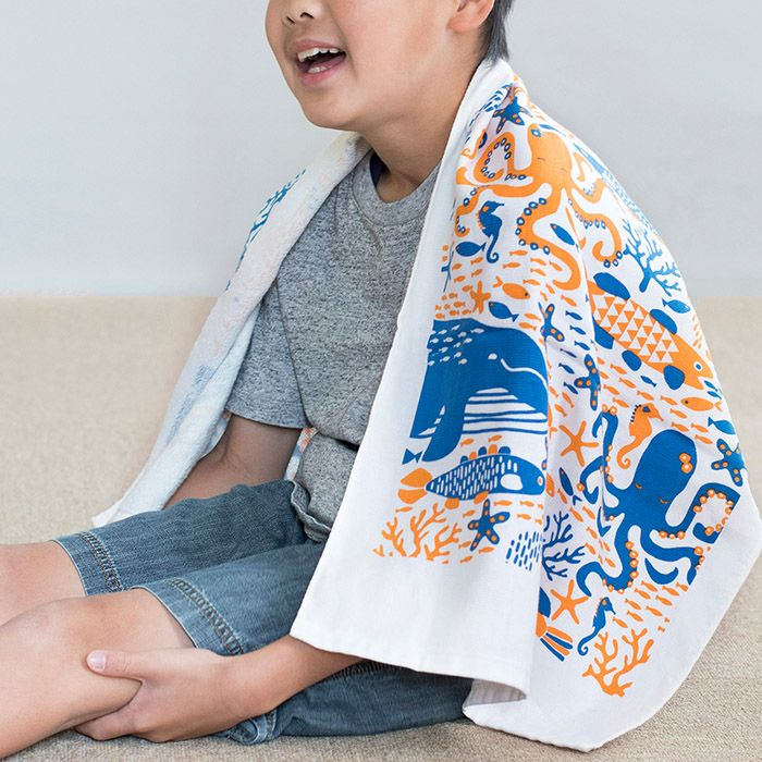 子どもの手でしっかり全身を拭けるサイズ感でキッズバスタオルに最適。