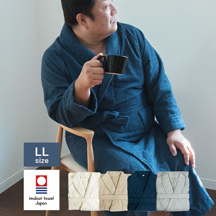 ★バスローブ 今治 ストライプ LLサイズ 日本製 綿100% ガーゼ