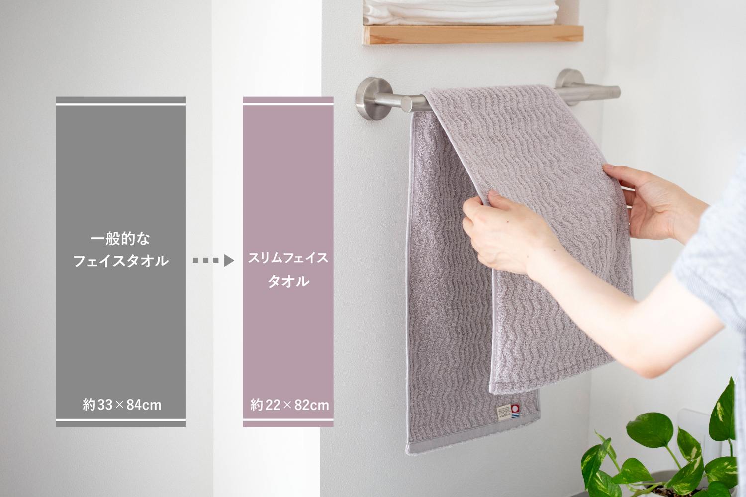 一般的なフェイスタオルよりも約10cm幅が小さく、