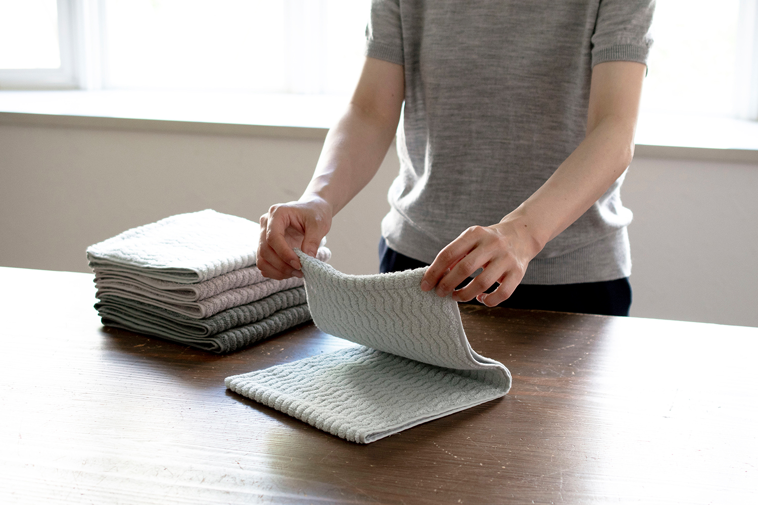 波模様の凹凸が、むぎゅっと弾力のある拭き心地に。