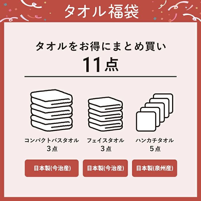 他の画像を見る 今治タオルや泉州タオルが最大16点入った豪華な福袋 タオル 福袋 松/竹/梅 今治タオル 泉州タオル 今治ガーゼケット ブランケット ふきん 2025 送料無料 オリジナル ¥ 3,980 税込 〜 ¥ 税込 在庫切れ 詳細を見る お気に入りに登録する