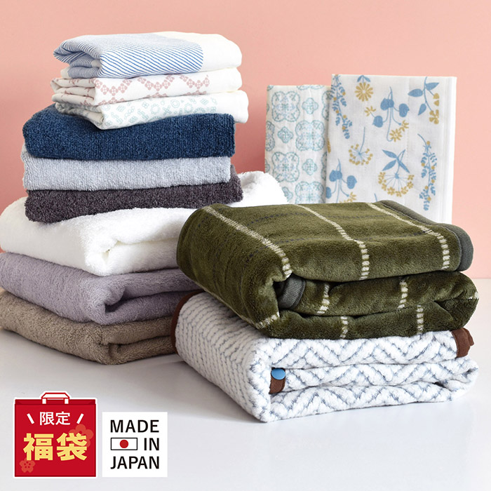 今治タオルや泉州タオルなどの日本製タオルや、ブランケット、ふきんなどなど・・ MAX13点入った豪華な福袋。