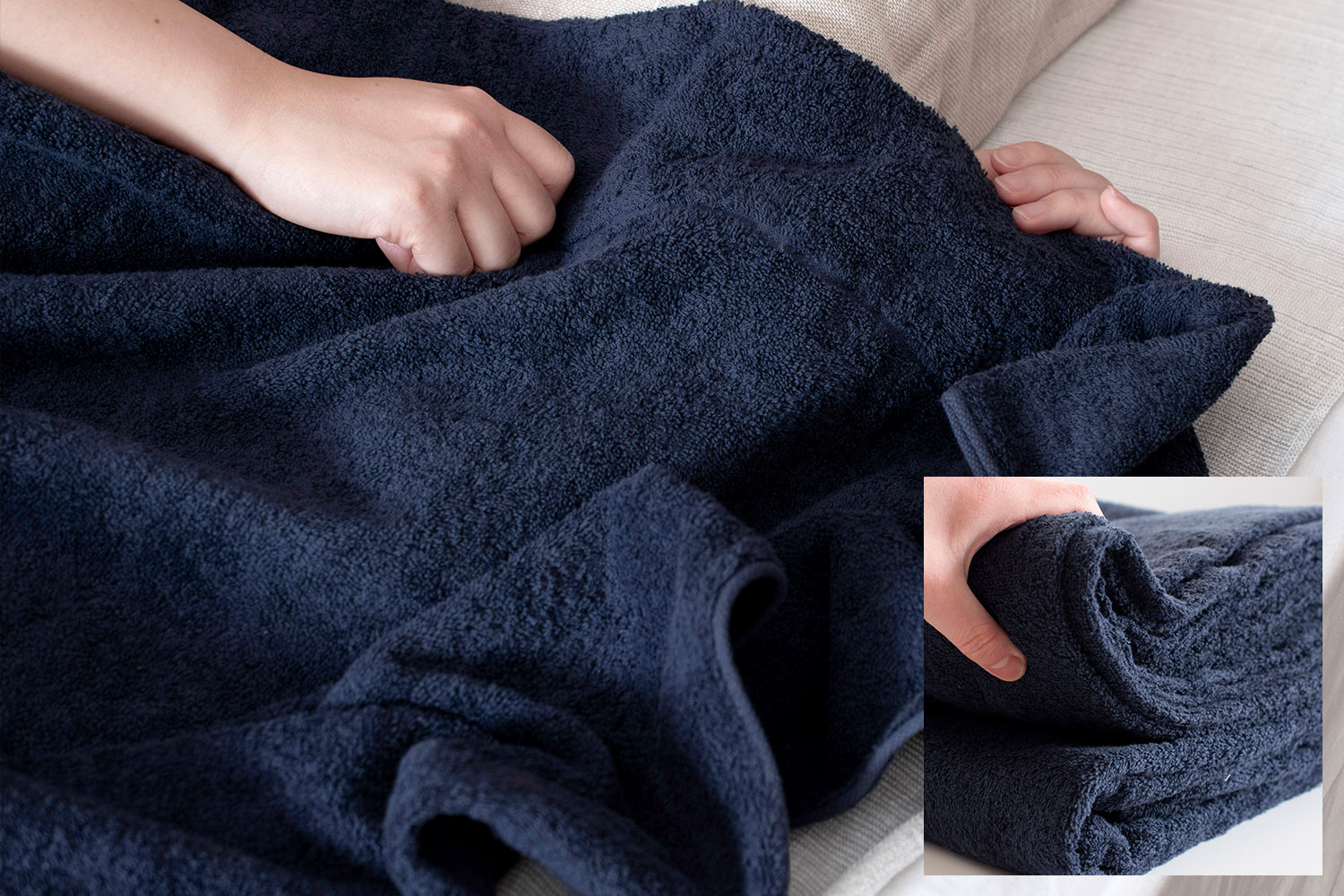 綿100%のなめらかさと、コシのある弾力が魅力のクーベルチュールタオルケット。