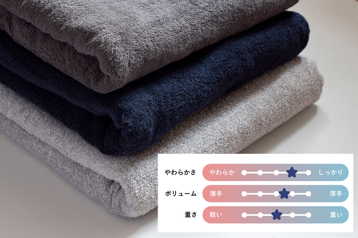 体にまとわりつかない、しっかりとした厚みと重みが使いやすい、トロンとしたかけ心地。