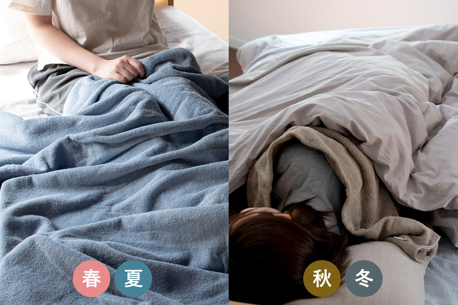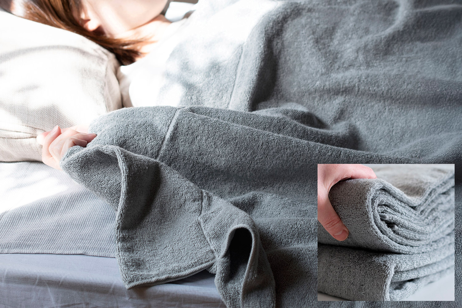 夏はもちろん、冬は羽毛布団の中に仕込むと、こもった汗を吸水しサラサラ肌で身体を温めます。