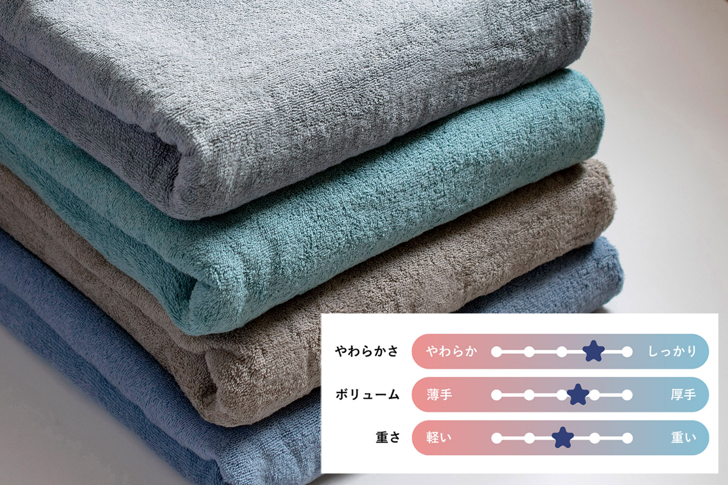 体にまとわりつかない、しっかりとした厚みと重みが使いやすい、トロンとしたかけ心地。
